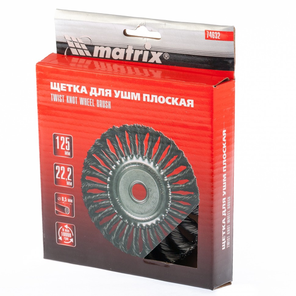 Щетка для УШМ 125 мм, посадка 22,2 мм, плоская, крученая проволока 0,5 мм Matrix
