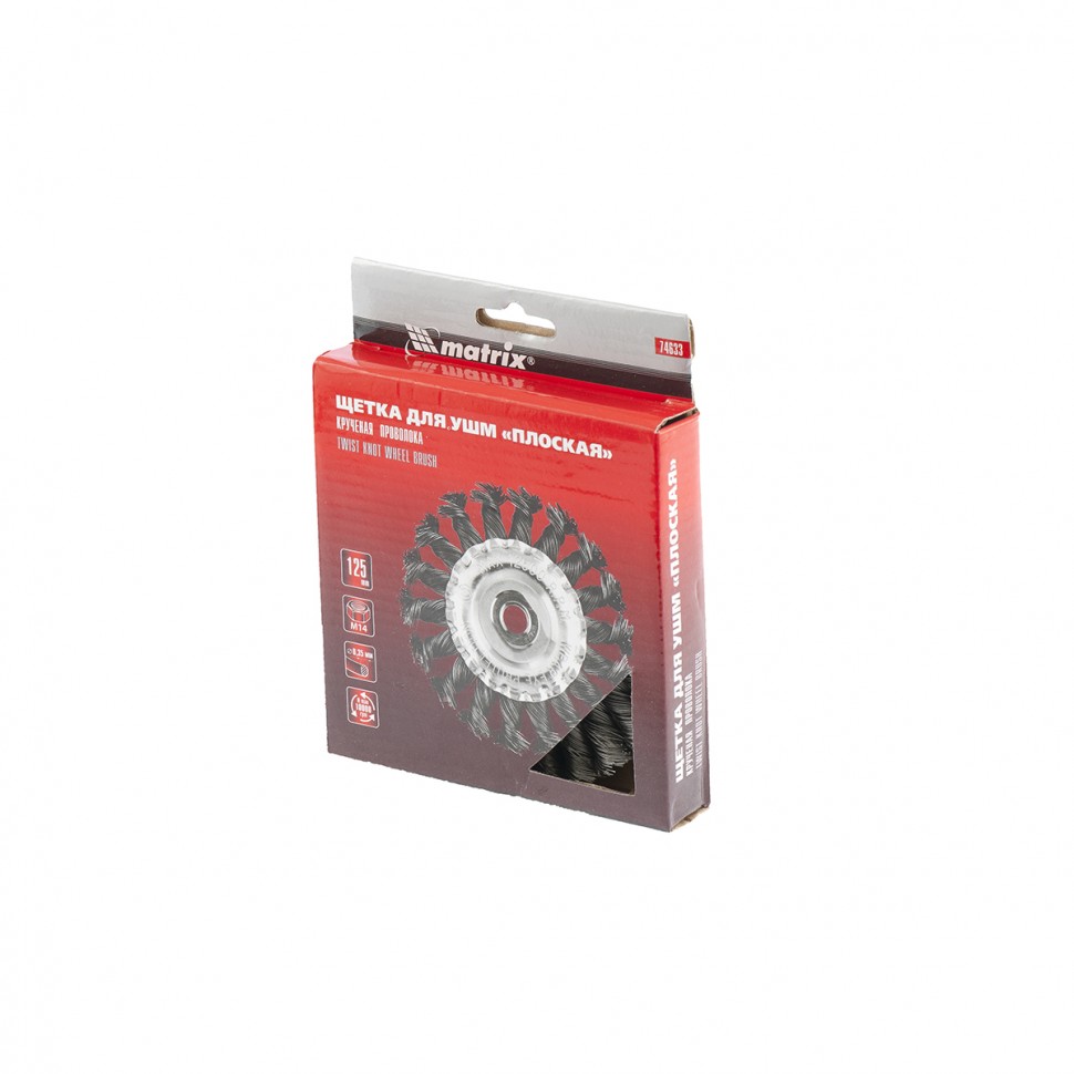 Щетка для УШМ 125 мм, М14, плоская, крученая проволока 0,35 мм Matrix