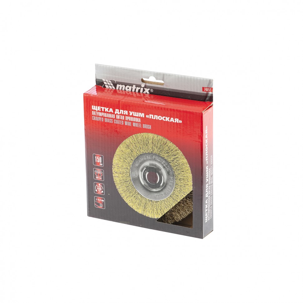 Щетка для УШМ, 150 мм, М14, плоская, латунированная витая проволока Matrix