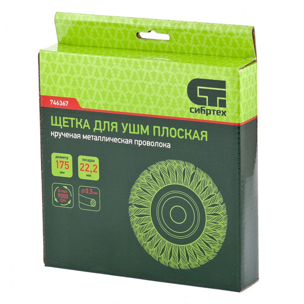 Щетка для УШМ 175 мм, посадка 22,2 мм, плоская, крученая металлическая проволока 0,5 мм Сибртех