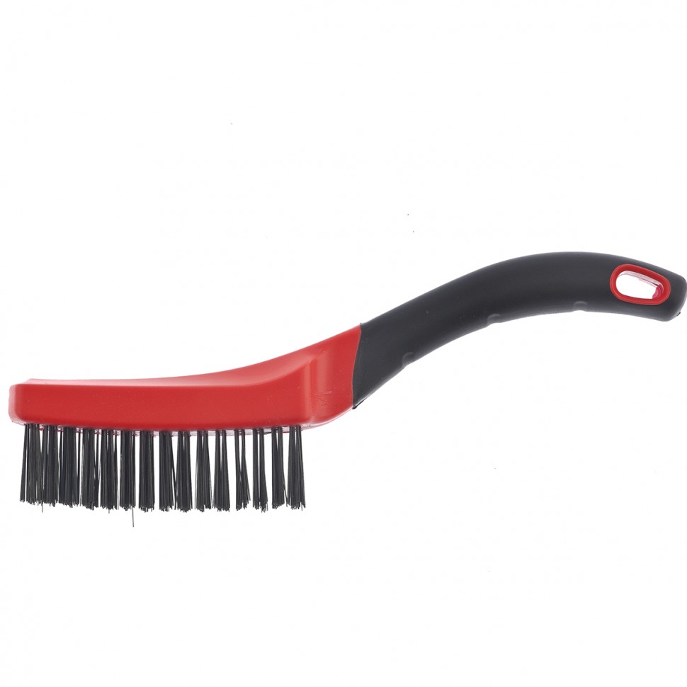 Удобная эргономичная рукоятка, выполненная из двух компонентов. Пластиковое основание, не ржавеет, не рассыхается и надежно удерживает щетину во время работы. Вставки из резины не позволяют руке проскальзывать при приложении значительных усилий.