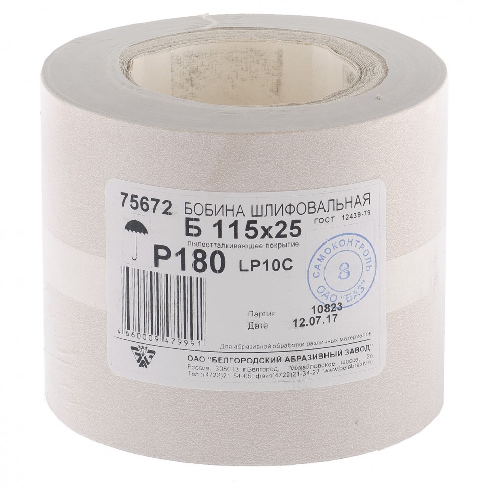 Шкурка на бумажной основе, LP10C, зерн. Р180, рулон 115мм х 25м (БАЗ) Россия