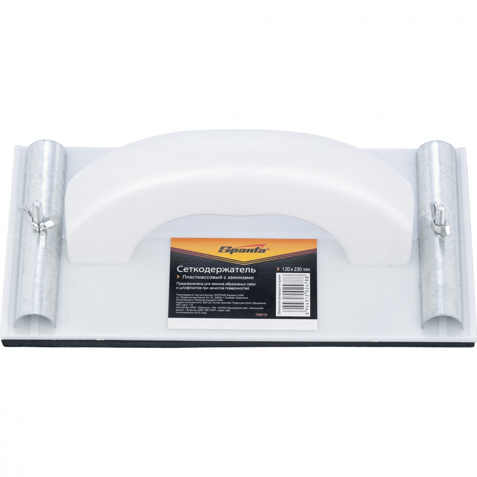 Пластмассовый сеткодержатель для шлифования имеет специальные металлические фиксаторы для зажима шлифовальной бумаги, абразивной сетки.