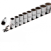 В набор входят торцевые головки с универсальным профилем SPLINE на планке под квадрат 1/2" следующих размеров: