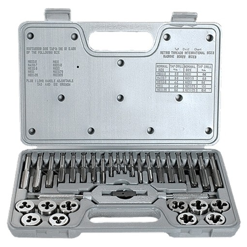 Данный набор метчиков и плашек подходит для профессионального использования, изготовлен из инструментальной легированной стали.