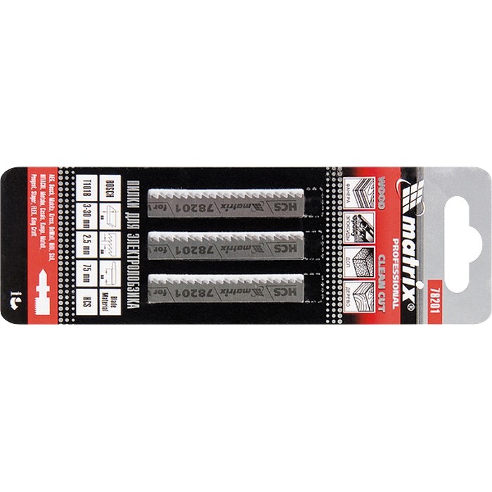 Полотна для электролобзика по дереву, 3 шт. T101B, 75 х 2,5мм, HCS Matrix
