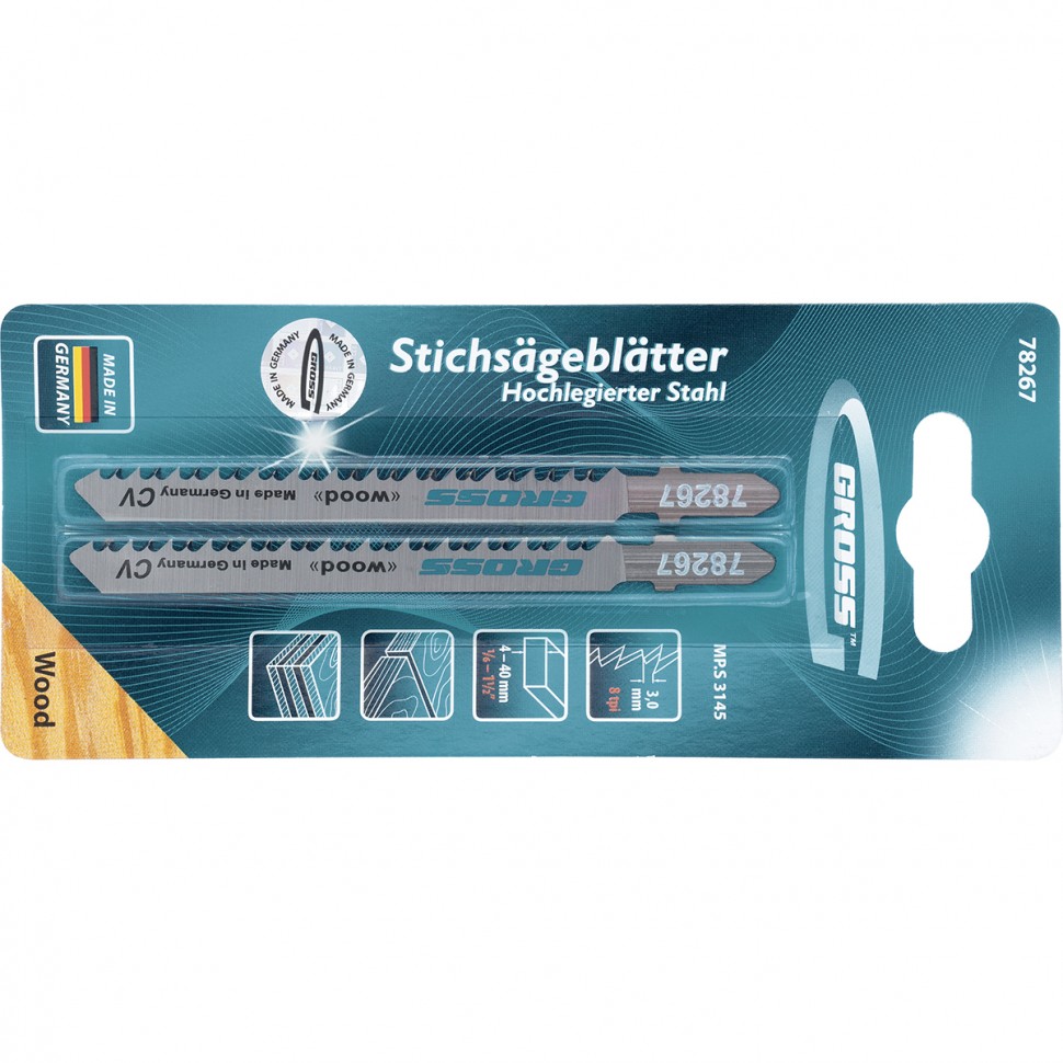 Полотна для электролобзика торговой марки GROSS изготовлены из высококачественной немецкой хромованадиевой стали и относятся к линейке профессионального инструмента.