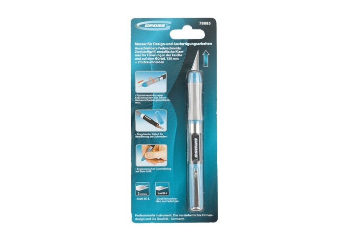 Нож для дизайна,выдвиж перовое лезвие,двухкомп .рук-ка,мет клипса для фиксации,150мм, 2 з.л Gross