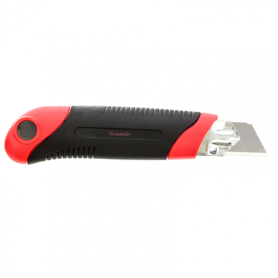 Нож, 25 мм, выдвиж. лезвие,метал. направляющая, двухкомп. корпус, винт.фиксатор, с магнитом Matrix