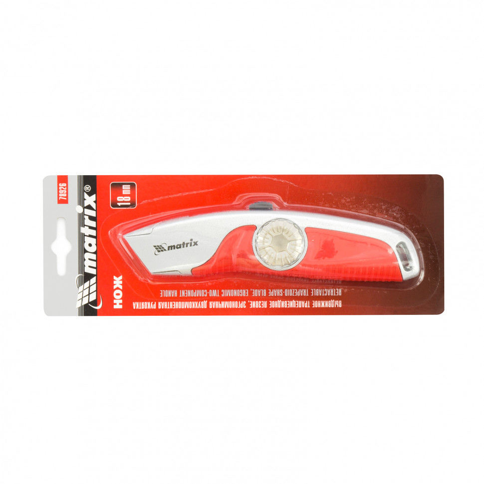 Нож, выдвижное трапецивидное лезвие, эргономичная двухкомпонентная рукоятка Matrix