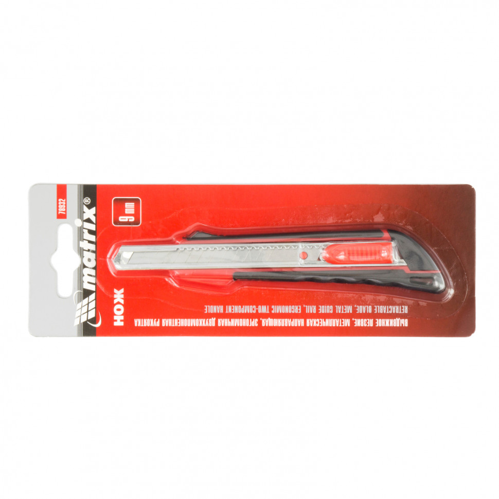 Нож, 9 мм выдвижное лезвие, метал. направляющая, эргоном. двухкомпонентная рукоятка Matrix