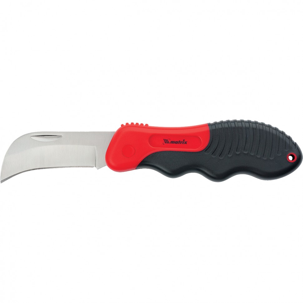 Нож электрика, складной, изогнутое лезвие, эргономичная двухкомпонентная рукоятка Matrix