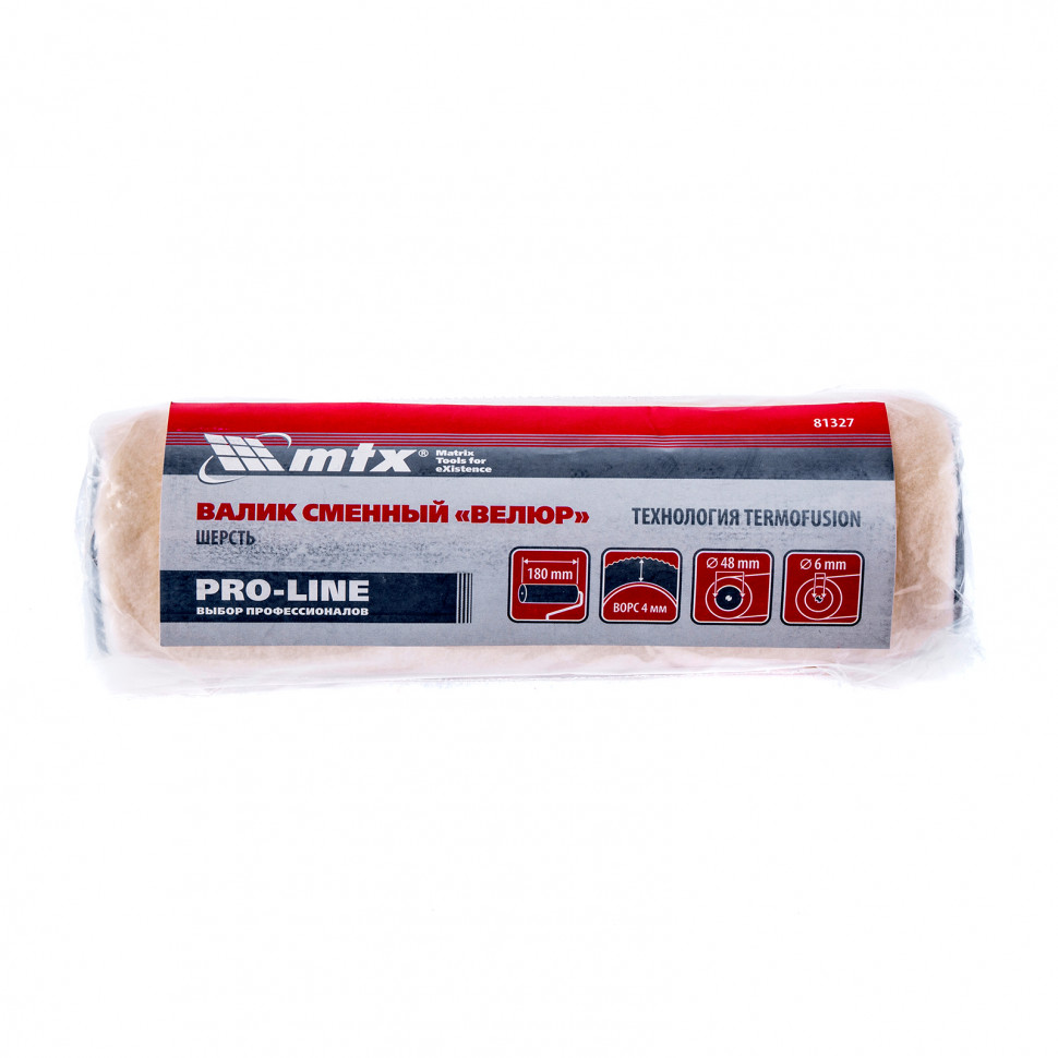 Валик сменный "ВЕЛЮР" PRO, 180 мм, ворс 4мм, D 48мм, D ручки - 6мм, шерсть 50%, полиакрил 50% MTX