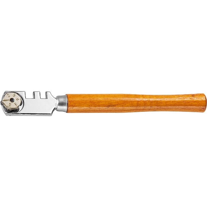 Стеклорез роликовый имеет эргономичную рукоятку из лакированной древесины.