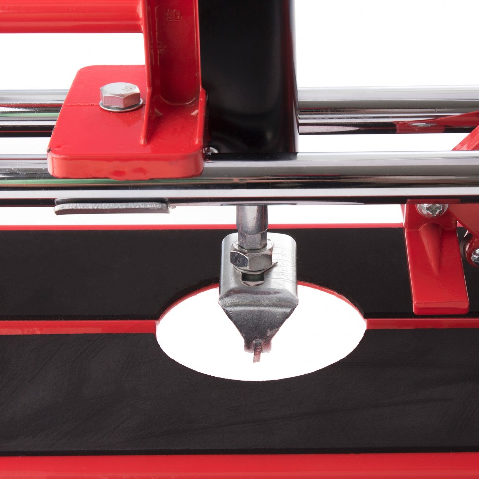 Предназначен для резки керамической кафельной плитки толщиной до 16 мм и длиной от 400 до 500 мм (в зависимости от модели). Режущим элементом является ролик из твердого сплава ВК-8. Направляющие изготовлены из высококачественной инструментальной стали с антикоррозионным покрытием. Дополнительное приспособление балеринка позволяет вырезать отверстия в плитке диаметром до 80 мм. Поворотный угольник-угломер позволяет резать плитку под углом до 45 градусов, а также регулирует размер и дополнительно фиксирует отрезаемую заготовку.