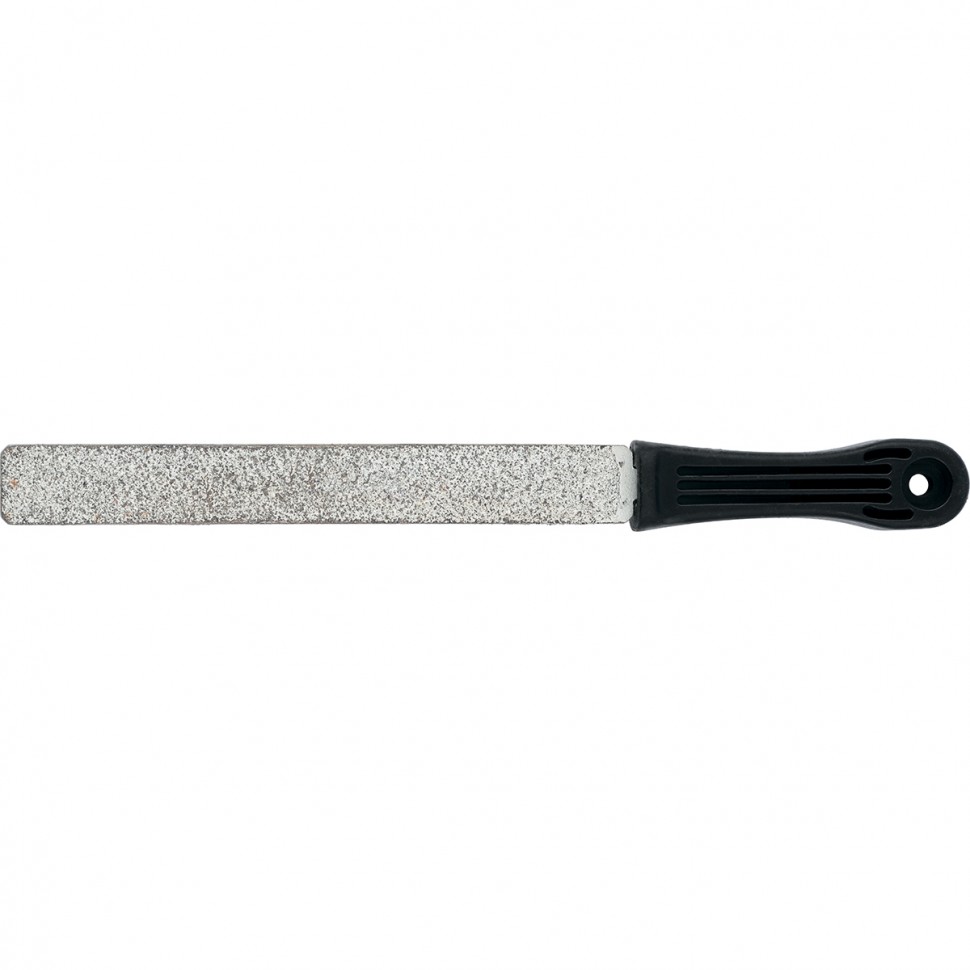 Напильник предназначен для качественной обработки плоских особо твердых поверхностей. Напильник изготовлен из углеродистой стали и имеет специальное карбидное напыление. Поставляется в комплекте с эргономичной полипропиленовой рукояткой, покрытой мягким эластомером.