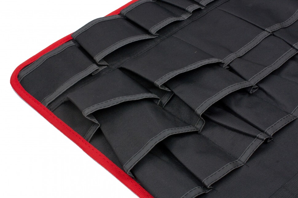 Имеет 38 карманов различного размера для размещения инструмента. Изготовлена из прочного синтетического материала.