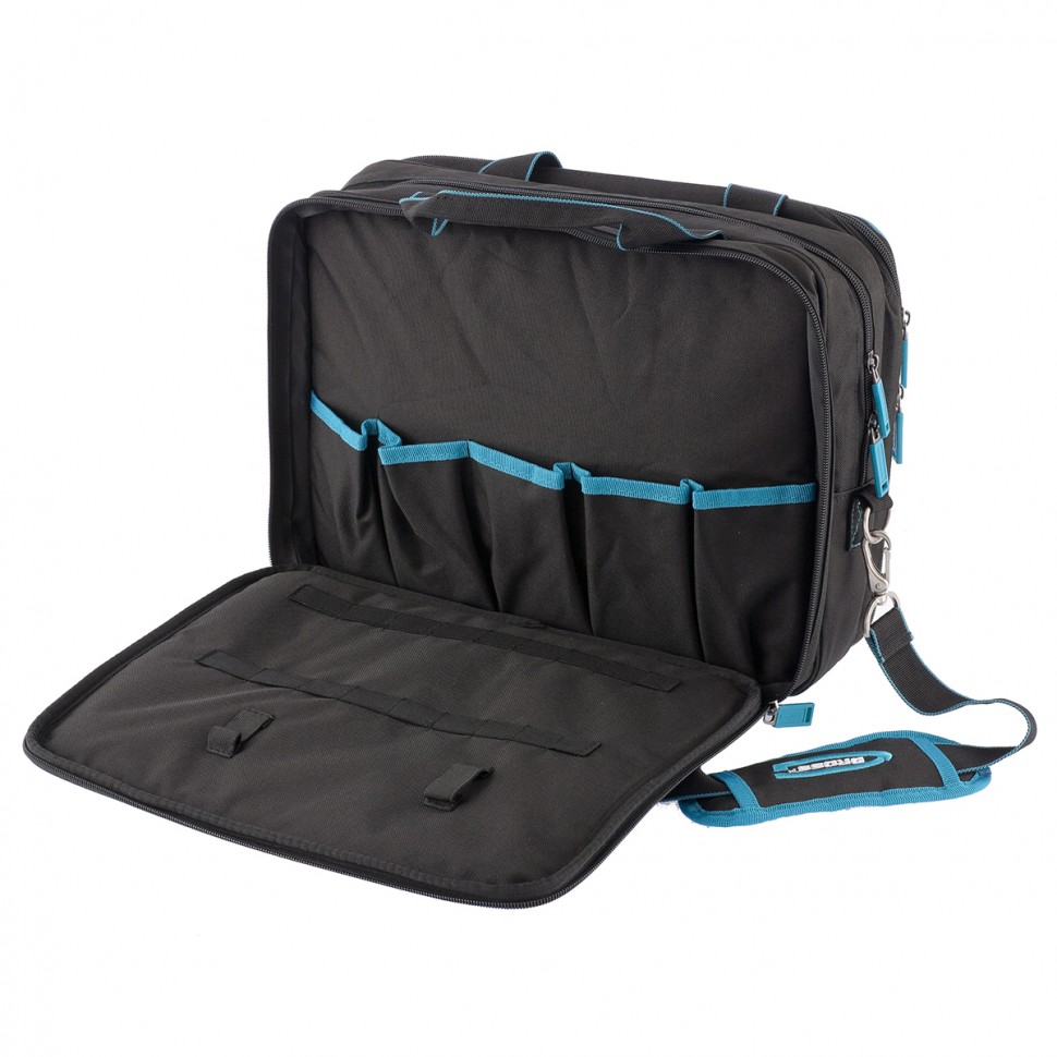 Сумка для инструмента предназначена для переноса и хранения ручного инструмента, документов формата А4, а также ноутбука с диагональю экрана до 15.