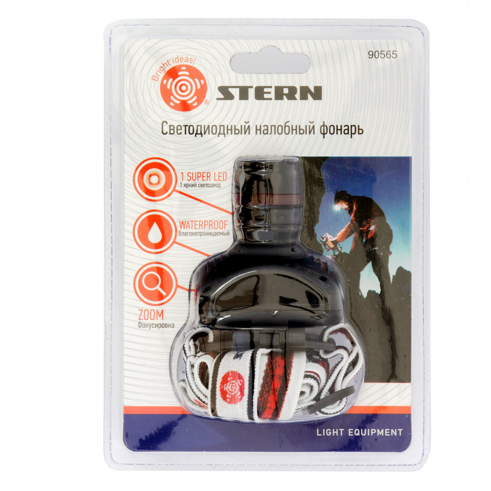 Фонарь налобный с возможностью зумирования луча, светодиодный, 1 super LED, 3хААА Stern
